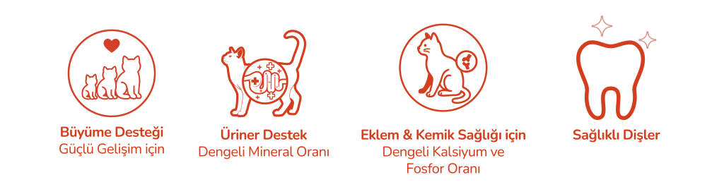 formülümüz, yavru kedilerin hızlı büyüme dönemindeki yüksek protein ve enerji ihtiyacını karşılamak, nörolojik gelişimini desteklemek ve bağışıklık sistemini güçlendirmek üzere formüle edilmiş, prebiyotik ve omega yağ asitleri ile zenginleştirilmiş pediatrik bir besin çözümüdür.